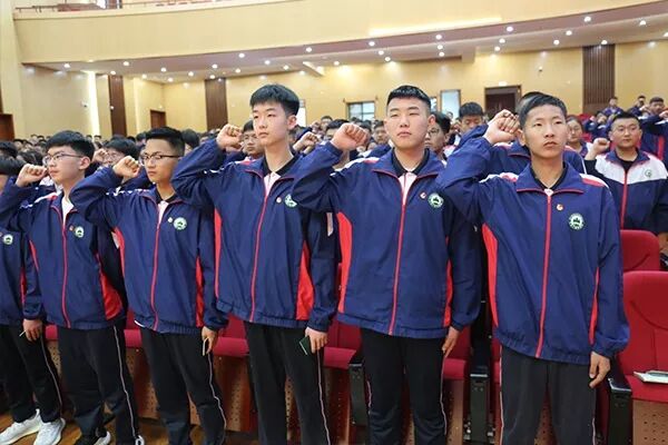 “以我火红青春,成就人生梦想;以我壮志激情,创造崭新希望……”四名同学献上激情昂扬的十八岁赞歌。在领誓人地带领下,全体同学郑重宣誓:“……我立志要做最好的自己,为中华民族的伟大复兴,砥砺奋进!”