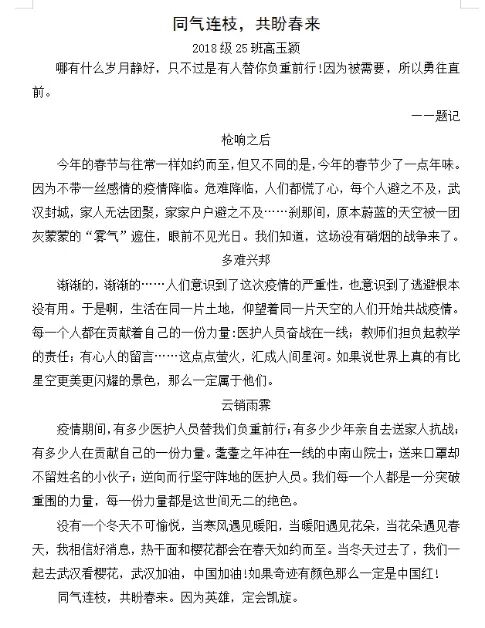 - 有难更有爱,同心战疫情——峡实学子优秀战“疫”文章赏析